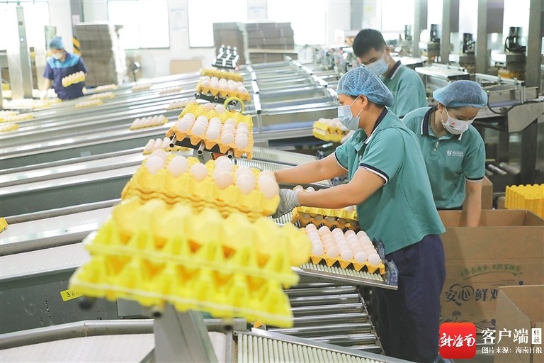 近日,澄迈县福山镇,海南农垦300万只蛋鸡全产业链(一期)项目蛋品车间内,工人分拣打包“无抗”鸡蛋。这些“无抗”鸡蛋目前已经进入旺佳旺、零食有鸣和罗森等线下商超、便利店。